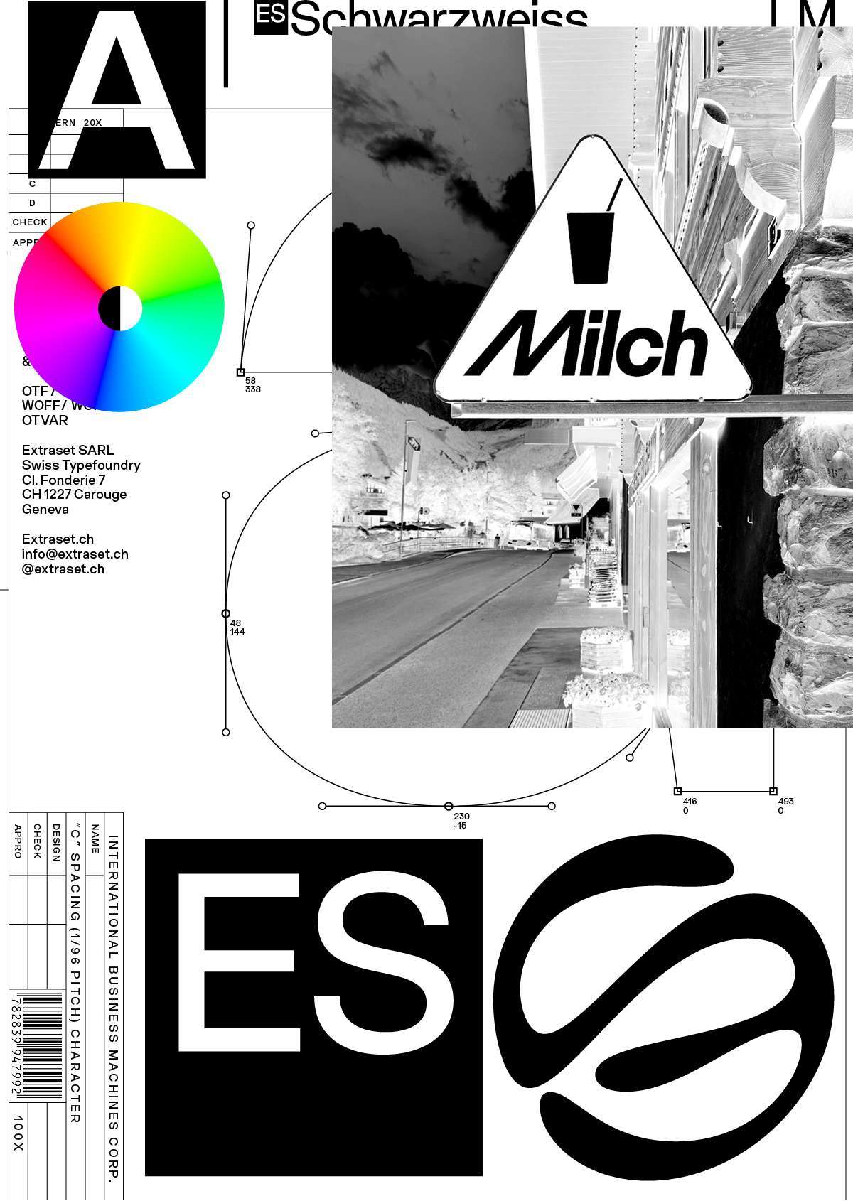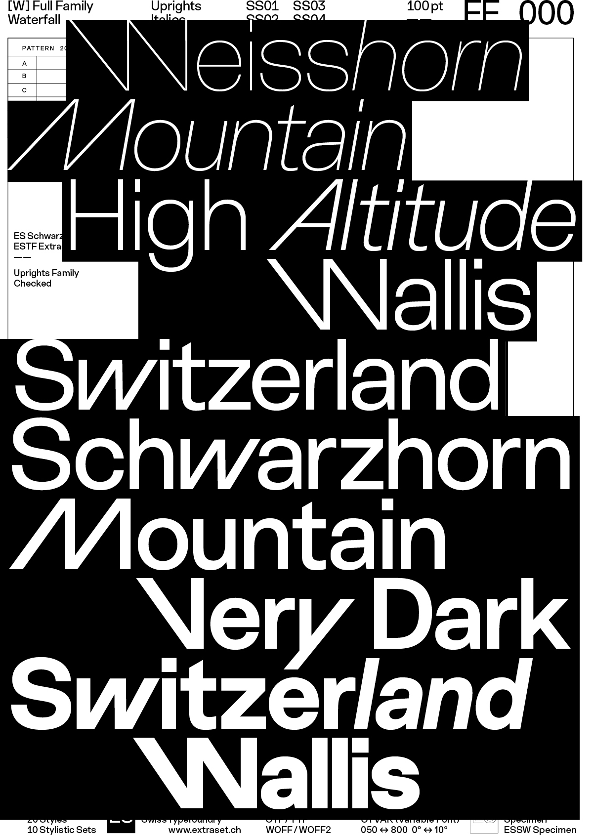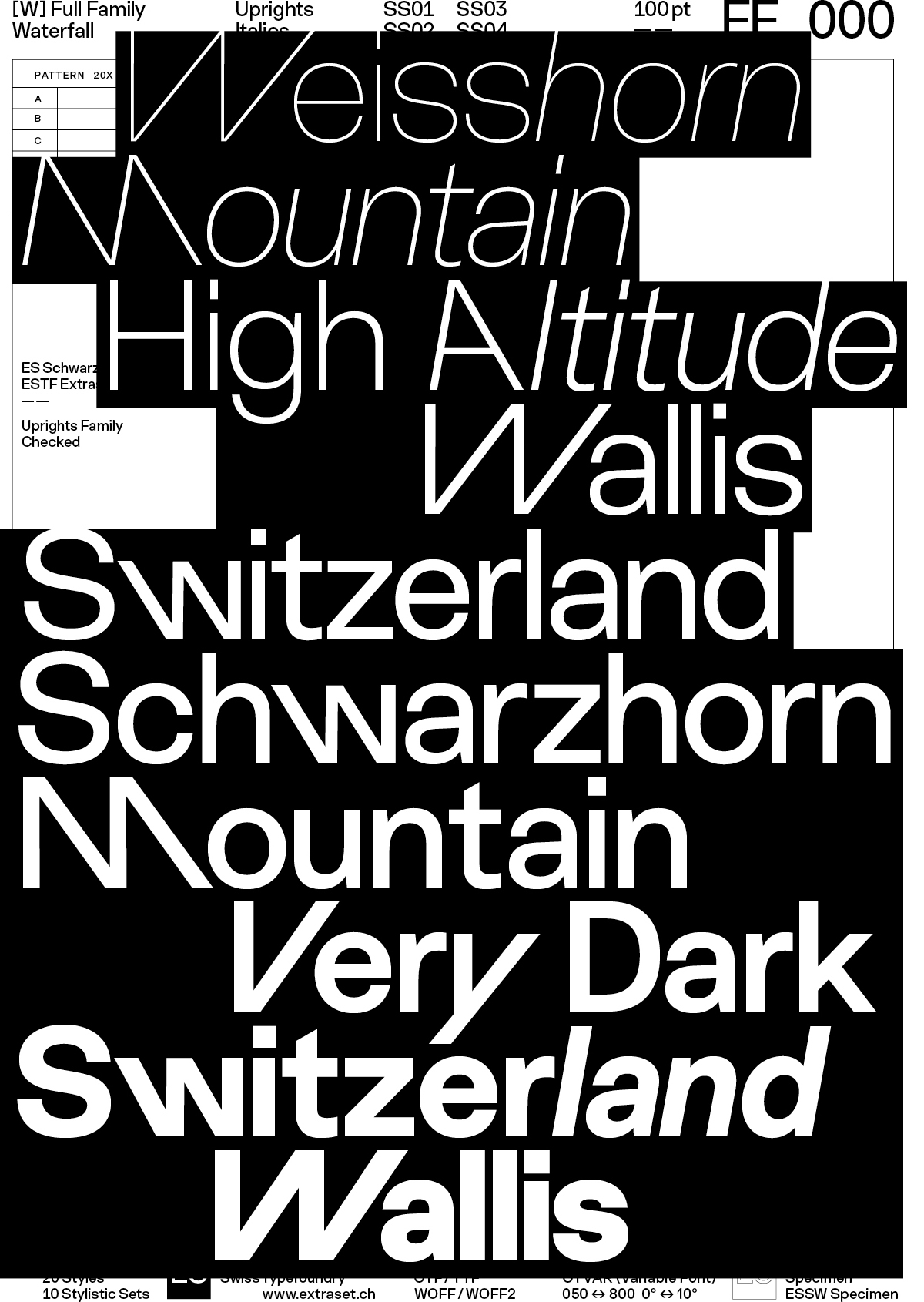 Over time, the font has constantly evolved in terms of finishing touches and glyph extensions, until it perfectly met the designer’s expectations. Ensuring a clean and homogeneous contrast across the spectrum, the result tends to timeless elegance, offers broad language coverage, and alternative stylistic systems that modulate readability affinities or allow for a more graphic approach to title composition. Schwarzweiss is a font family composed of 10 weights and related italics, 10 stylistic sets, and a variable font.